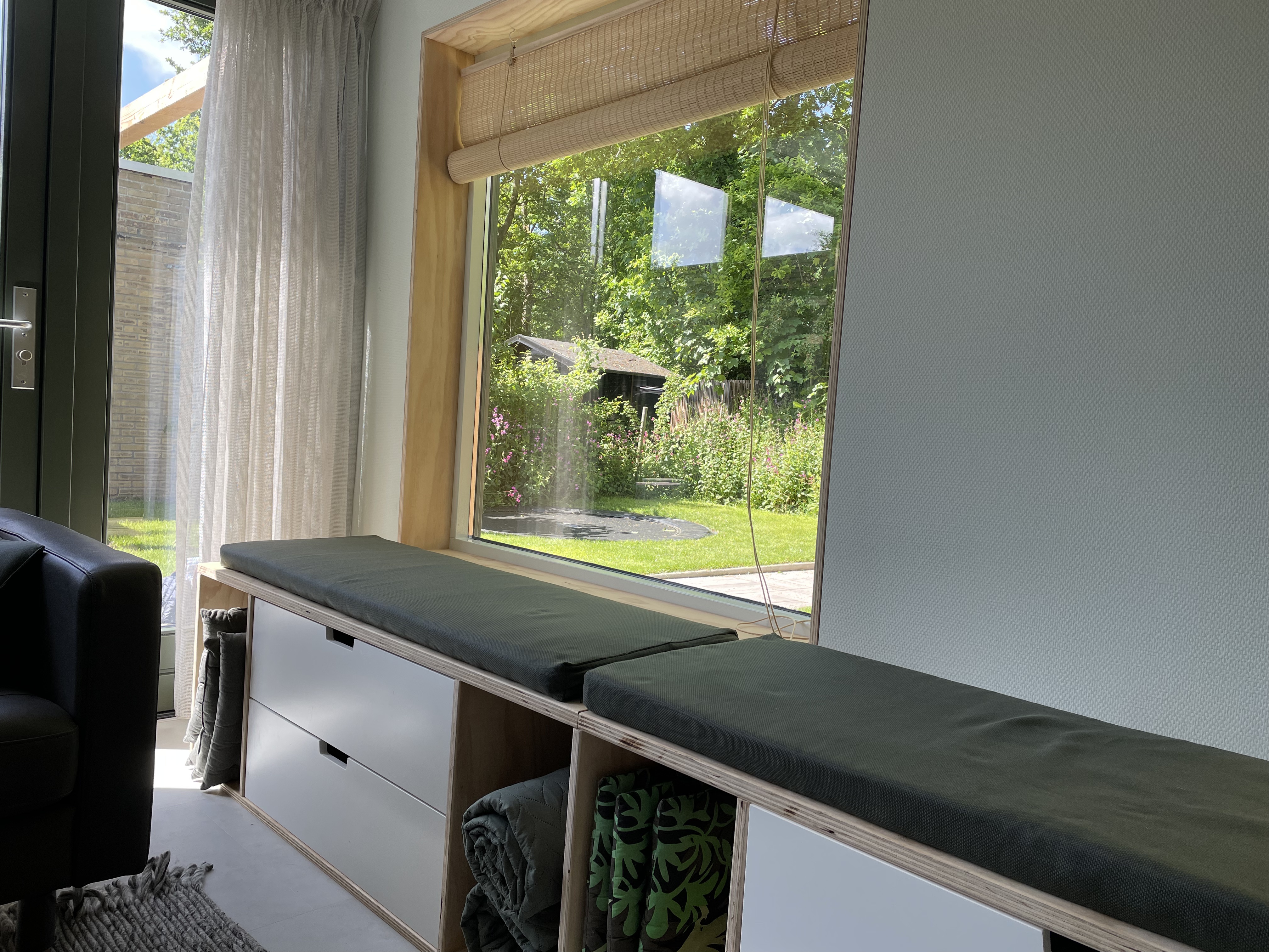 Nestel je lekker op de ligbank voor het raam om lekker te lezen of gewoon te genieten van het uitzicht op de tuin en bomen. Verbind je telefoon aan de Sonos box en speel je favoriete playlist af. Zet alle tuindeuren open, laat de bries binnen komen of loop lekker de tuin in. In koudere tijden zit je ook heerlijk, in het hele huis ligt vloerverwarming, in de woonkamer een warm kleed onder je voeten. Pak spelletjes uit de la. Kijk samen een serie, stream je Netflix of Videoland account op de Samsung Smart TV.